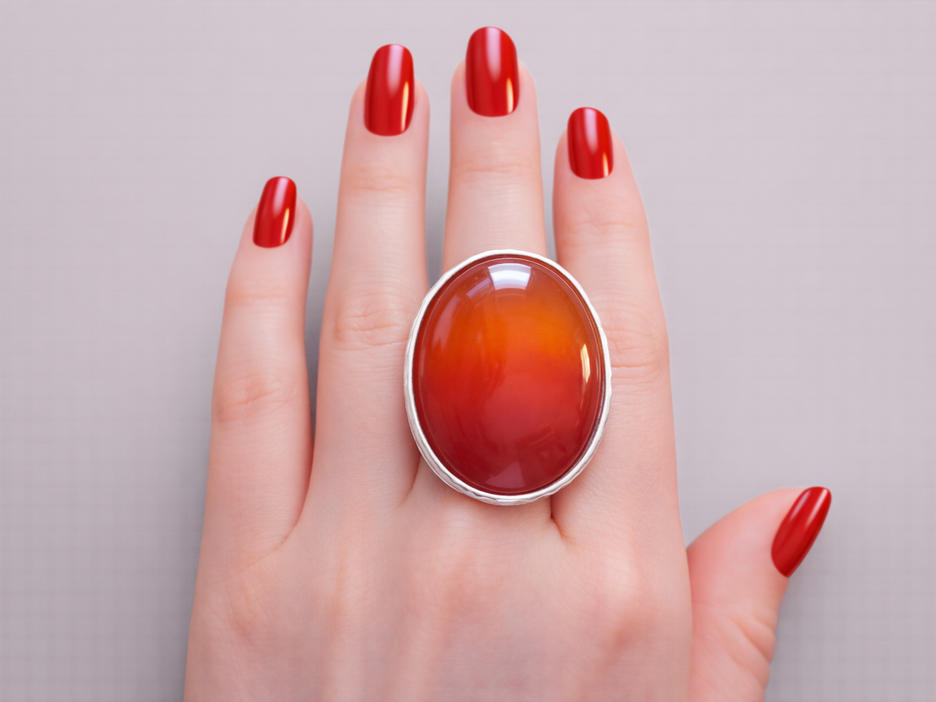 This handmade Carnelian ring is a stunning example of natural beauty and craftsmanship. The large oval agate stone is a rich orangey red, creating a unique statement piece that’s both grounding and elegant. Set in a silver-plated adjustable band, this chunky ring is hypoallergenic and comfortable to wear every day. Handmade in the UK, it’s a timeless addition to any jewellery collection — perfect for those who love natural stones and bold, artisan designs.