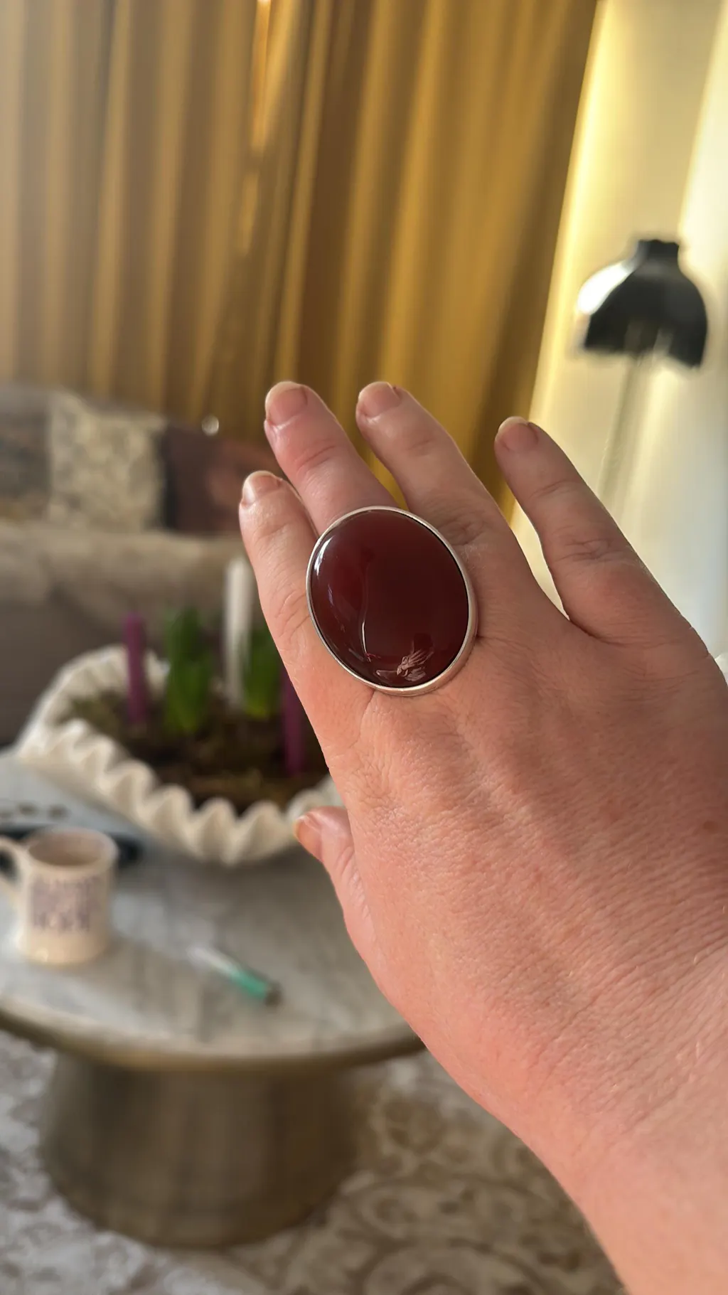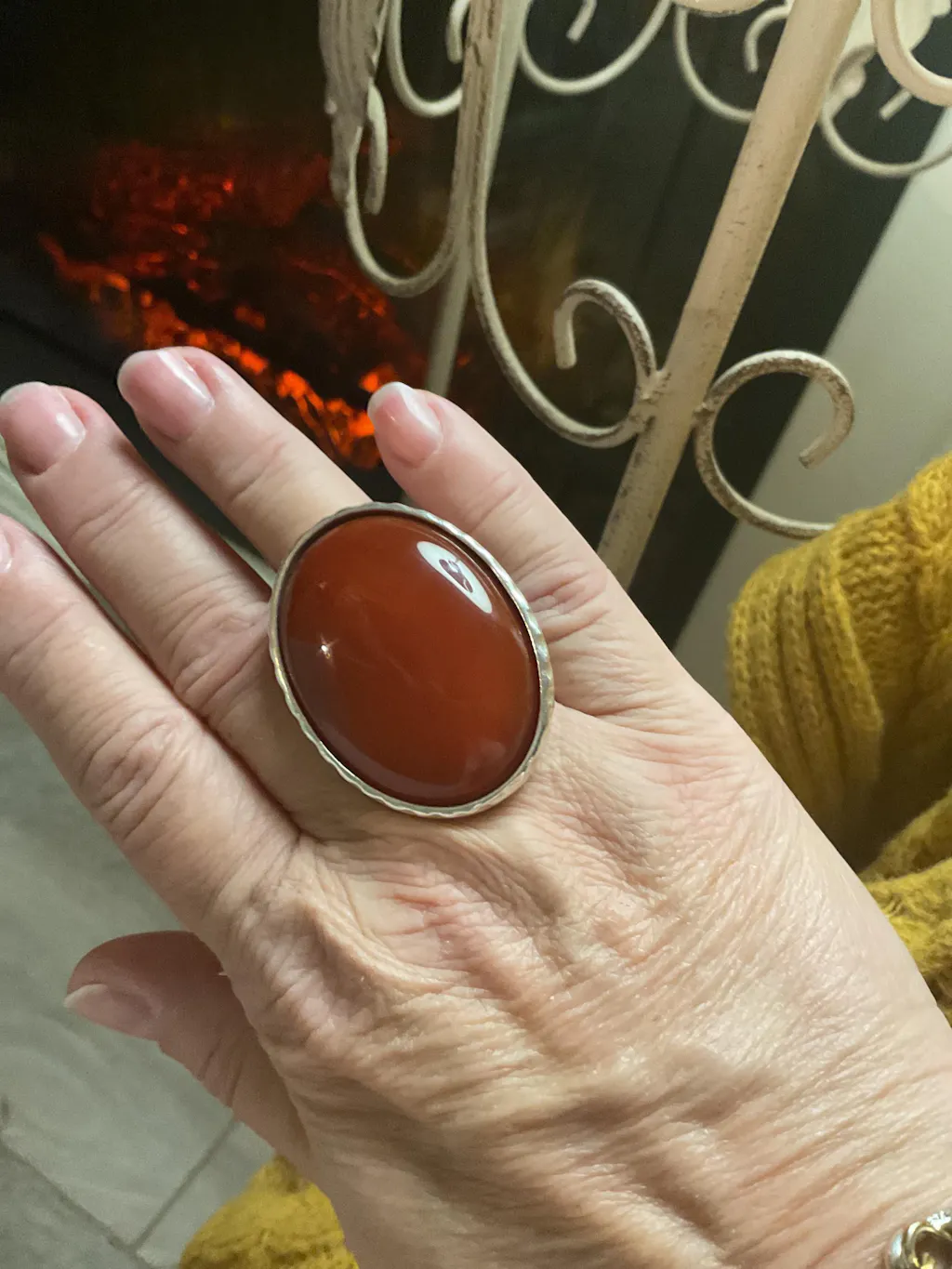 Big and chunky Red Carnelian ring. This ring boasts a beautiful deep rich reddish brown semi precious oval gemstone stone in a heavy handmade silver setting. A great addition to your red jewellery collection
