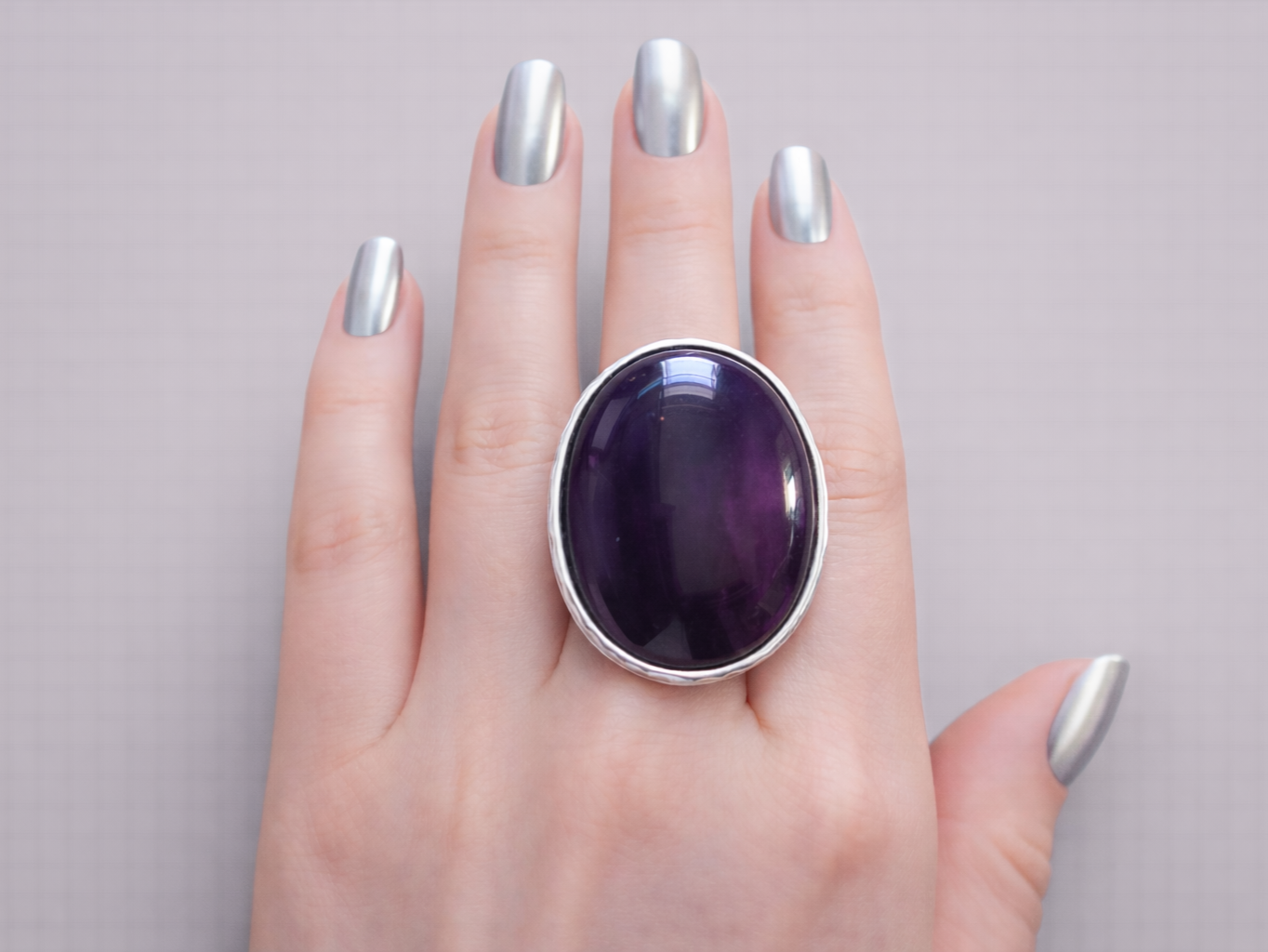 Make a bold statement with this deep purple agate ring, a stunning piece of handmade jewellery crafted in the UK. The vibrant purple hue creates a striking, one-of-a-kind design that catches the light beautifully. Set in an adjustable, hypoallergenic silver band, this chunky statement ring offers both comfort and standout style. Perfect as a gift for her, it’s a gorgeous addition to any jewellery collection — ideal for birthdays, anniversaries, or simply to add a pop of colour to your look.