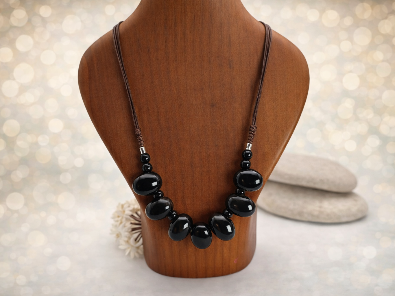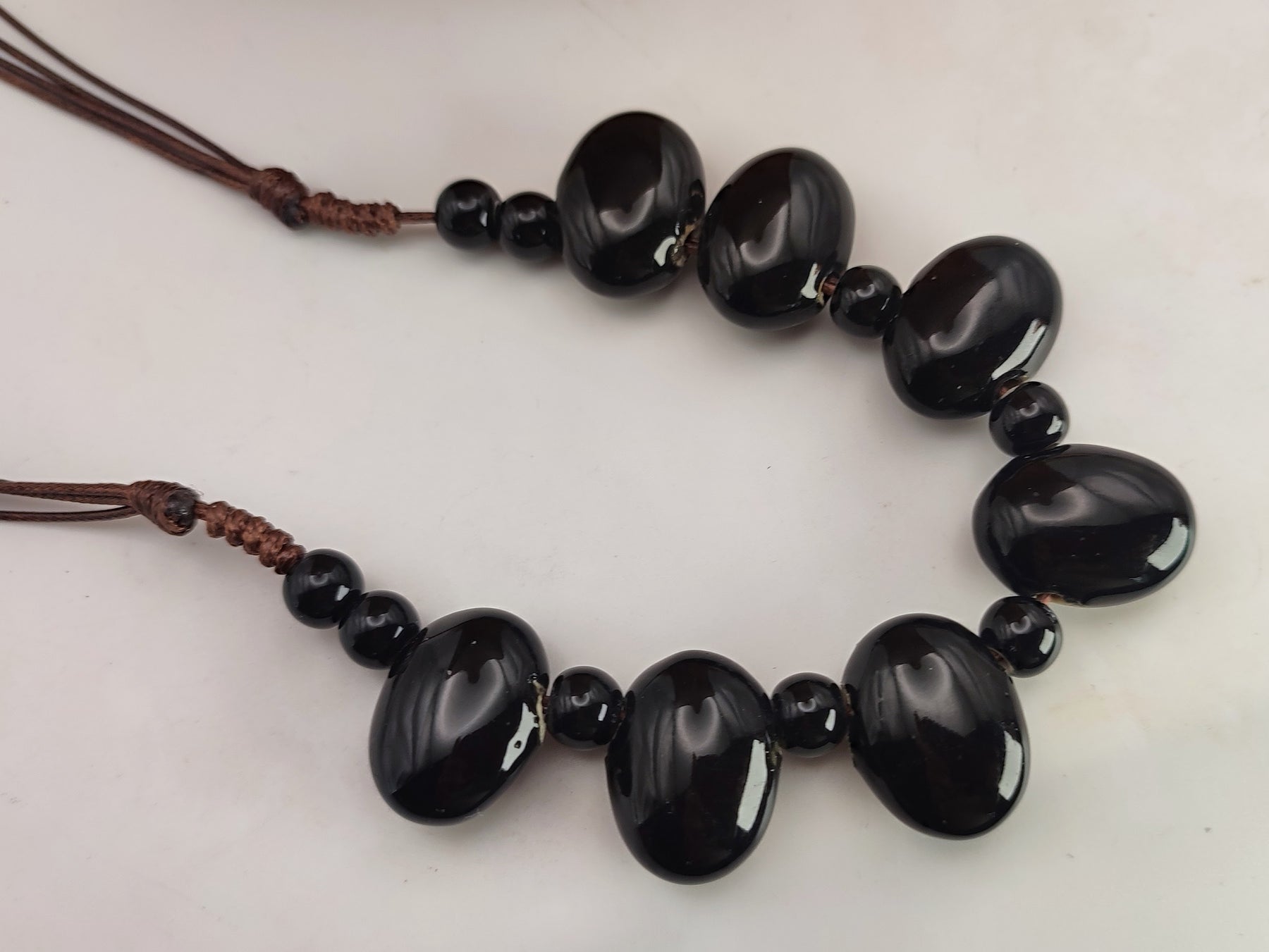 If you like jewellery that feels confident and easy to wear, this piece does exactly that. The long length keeps it relaxed, while the deep black ceramic beads give it a polished, striking edge. Handmade and full of impact, it is a go-to piece when you want something bold that will work again and again.