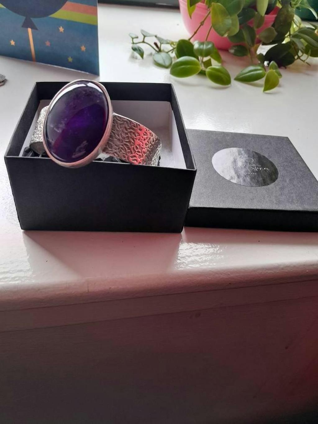 This stunning amethyst boho cuff bracelet showcases a rich violet stone set in antique silver for a beautifully earthy yet elegant look. Handmade in the UK, the large oval amethyst centrepiece radiates calm sophistication, while the textured antique silver band adds a touch of vintage charm. Hypoallergenic and adjustable, it’s the perfect statement piece for free-spirited jewellery lovers who value unique, artisan craftsmanship.