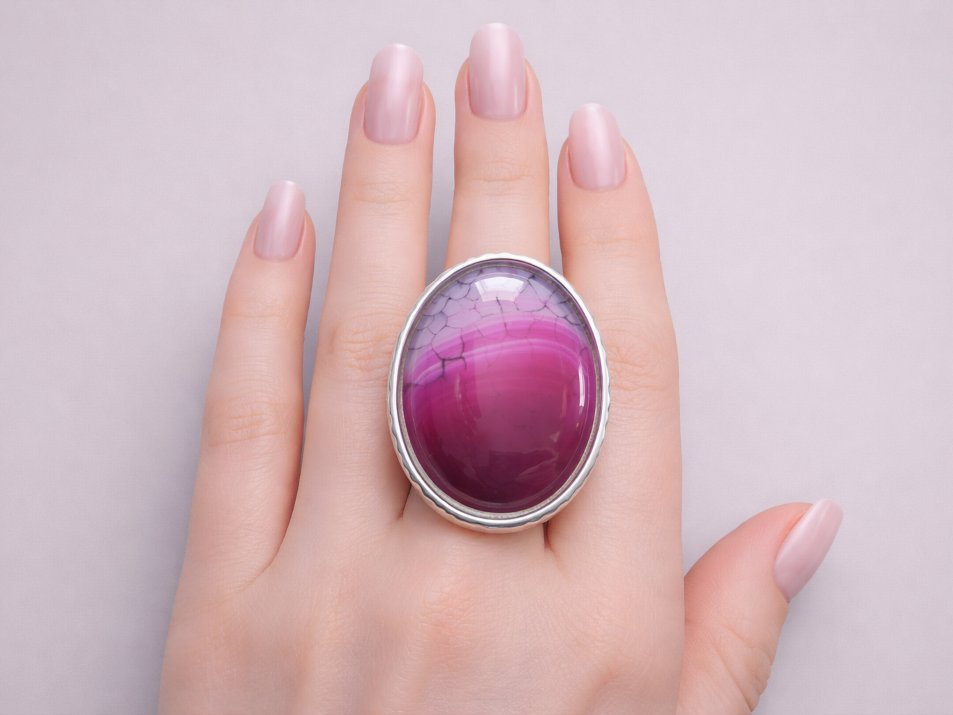 Unusual and unique Agate ring in shades of deep pink and white. The adjustable band ensures a comfortable fit.